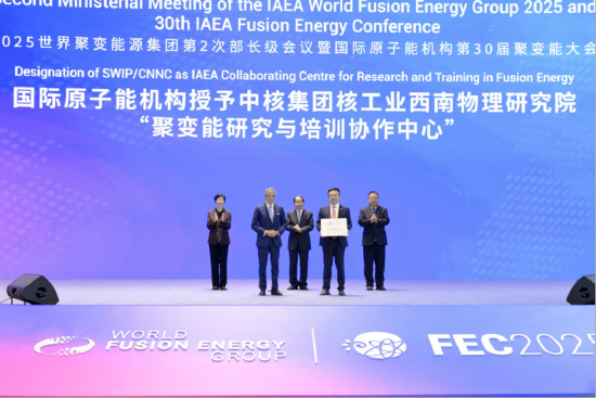 10月14日消息,国家原子能机构联合四川省人民政府、国际原子能机构,在四川省成都市主办的世界聚变能源集团第2次部长级会议暨国际原子能机构第30届聚变能大会今天开幕。在中国国家原子能机构主任单忠德、国际原子能机构总干事格罗西、四川省人民政府省长施小琳、中国核工业集团有限公司董事长申彦锋的共同见证下,国际原子能机构指定中核集团核工业西南物理研究院为其首个“聚变能研究与培训协作中心”。