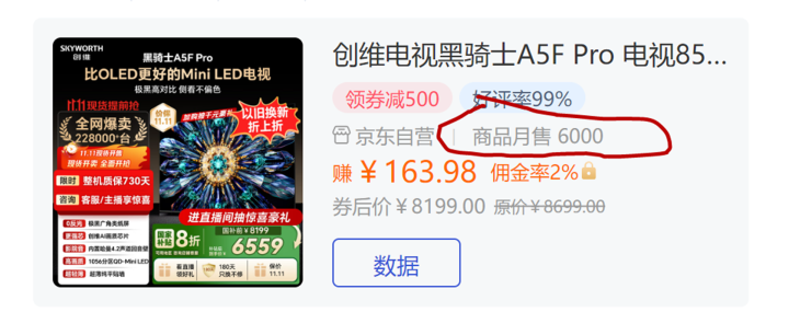 创维电视黑骑士 85A5F Pro 适合对画质和音效有较高要求,注重家居美观的用户 。它的超薄贴墙安装设计,厚度仅 39.9mm,贴合墙面节省空间,钛金灰金属边框提升整体质感与耐用性,能与现代简约的家居风格完美融合 。其月销量超6000台,是当下最受欢迎的电视机之一。