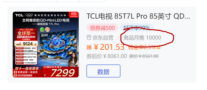 TCL 电视 85T7L Pro 的性价比优势明显,国补后的参考价为 6499 元,在这个价位段,能有如此出色的画质、音效和智能体验,非常难得 。它适合对画质有一定要求,同时又注重性价比的用户,对于普通家庭来说,是一个非常不错的选择 。其月销量超万台,是当下最受欢迎的Mini LED电视之一。